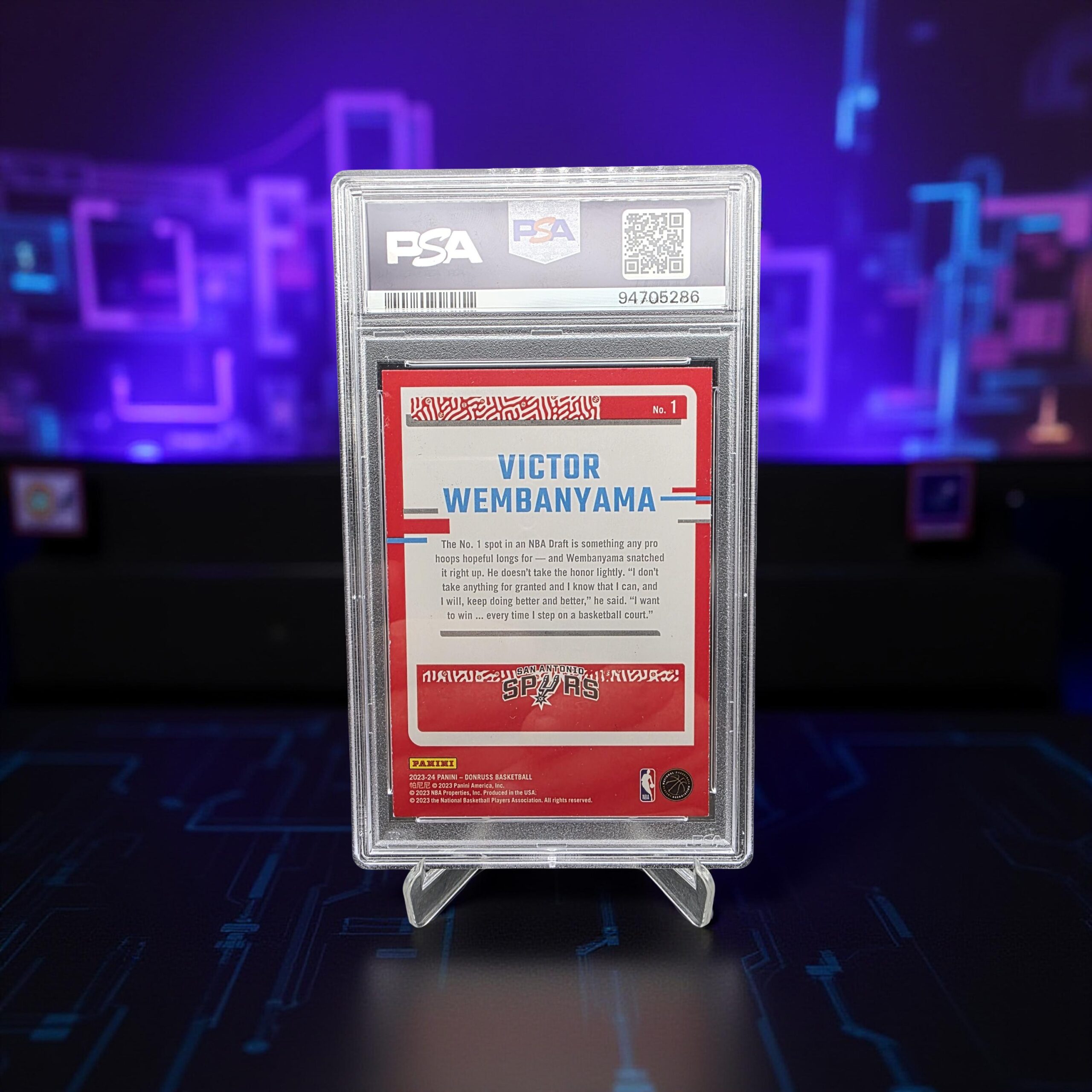 Carte rookie de Victor Wembanyama, phénomène français et #1 pick de la Draft NBA 2023. Cette carte issue de la collection Donruss « The Rookies » est l’une des plus recherchées de la saison 2023-24.